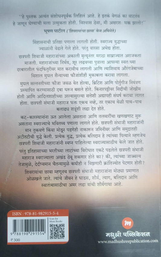 Swarajyacha Chhava : Chhatrapati Sambhaji Maharaj By Navnath Jagtap, Vaibhav Salunke (स्वराज्याचा छावा: छत्रपती संभाजी महाराज । लेखक - नवनाथ जगताप, वैभव साळुंके)