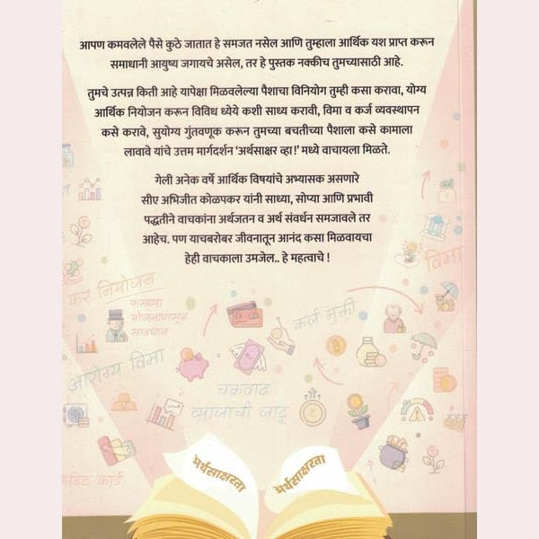 लेखक श्री. अभिजीत कोळपकर चार्टर्ड अकाउंटंट जवळपास दोन दशकांचा व्यावसायिक अनुभव विविध वित्त विषयांचे अभ्यासक अर्थ विषयक संकल्पनांचे सुलभ आकलन व्हावे यासाठी सातत्याने प्रयत्नशील व या प्रयत्नांचा महत्वाचा टप्पा म्हणजे 'अर्थसाक्षर व्हा !' आपण कमवलेले पैसे कुठे जातात हे समजत नसेल आणि तुम्हाला आर्थिक यश प्राप्त करून समाधानी आयुष्य जगायचे असेल, तर हे पुस्तक नक्कीच तुमच्यासाठी आहे. - ‘अर्थसाक्षर व्हा !’ एकूण ६ भागांमध्ये विभागण्यात आले आहे. १. ओळख अर्थसाक्षरतेची २. आर्थिक नियोजन ३. विमा व कर्ज व्यवस्थापन ४. गुंतवणूक नियोजन ५. शेअर्स व म्युच्युअल फंड ६. आर्थिक फसवणुकींपासून सावधान ! - तुमचे उत्पन्न किती आहे यापेक्षा मिळवलेल्या पैशाचा विनियोग तुम्ही कसा करावा, योग्य आर्थिक नियोजन करून विविध ध्येये कशी साध्य करावी, विमा व कर्ज व्यवस्थापन कसे करावे, सुयोग्य गुंतवणूक करून तुमच्या बचतीच्या पैशाला कसे कामाला लावावे यांचे उत्तम मार्गदर्शन ‘अर्थसाक्षर व्हा!’ मध्ये वाचायला मिळते. About Author - सीए अभिजीत कोळपकर गेली अनेक वर्षे आर्थिक विषयांचे अभ्यासक आहेत. अर्थसाक्षरतेसारखा मोठा परीघ असलेला दुर्लक्षित पण महत्वाचा विषय सोप्या भाषेत मांडण्याचा प्रयत्न लिखाणाद्वारे ते करतात.