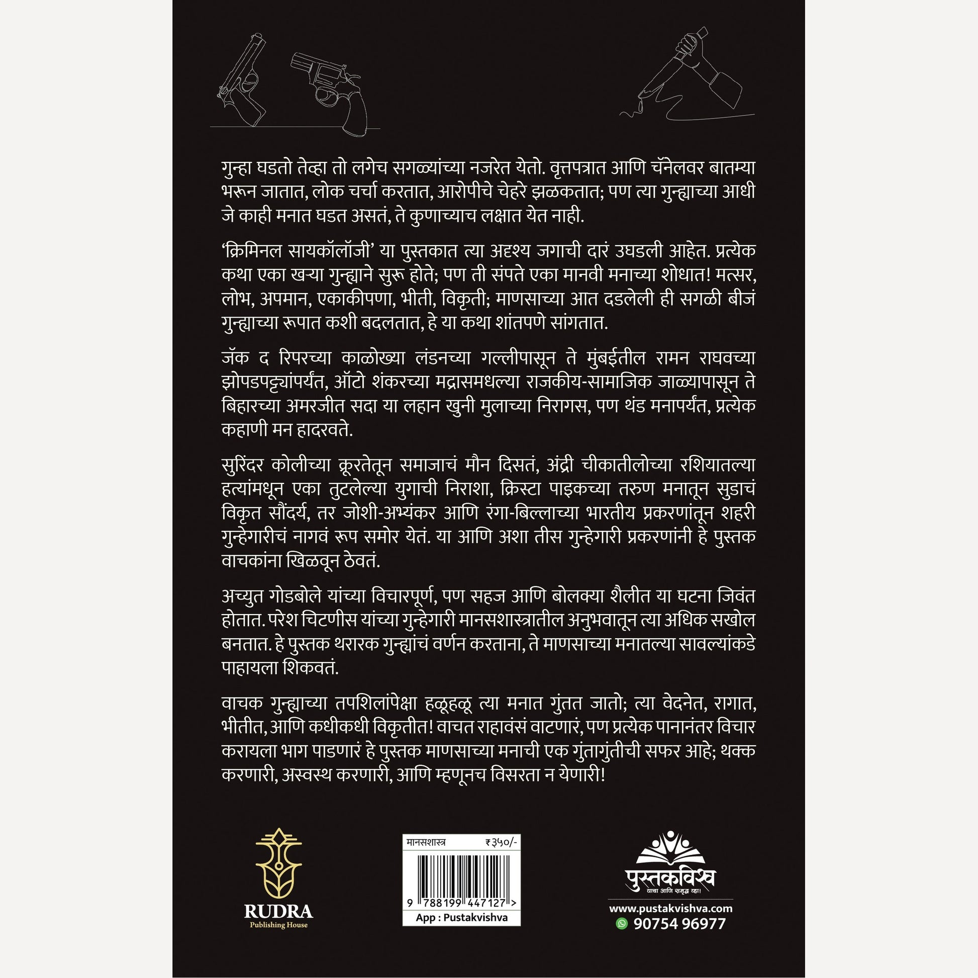 ‘गुन्हेगारी मानसशास्त्र’ या पुस्तकात त्या अदृश्य जगाची दारं उघडली आहेत. प्रत्येक कथा एका खऱ्या गुन्ह्याने सुरू होते, पण ती संपते एका मानवी मनाच्या शोधात. मत्सर, लोभ, अपमान, एकाकीपणा, भीती, विकृती; माणसाच्या आत दडलेली ही सगळी बीजं गुन्ह्याच्या रूपात कशी बदलतात, हे या कथा शांतपणे सांगतात.