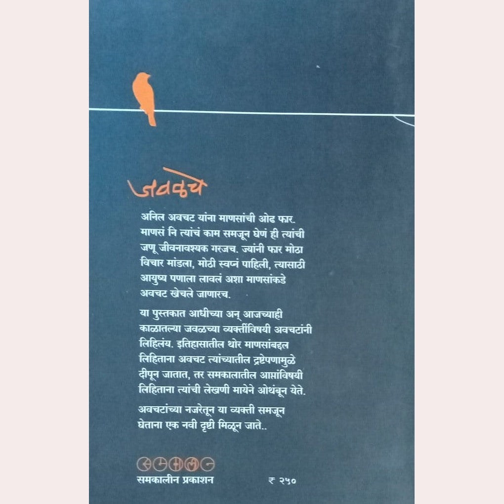 या पुस्तकात आधीच्या अन् आजच्याही काळातल्या 'जवळच्या व्यक्तींविषयी अवचटांनी लिहिलंय. इतिहासातील थोर माणसांबद्दल लिहिताना अवचट त्यांच्यातील द्रष्टेपणामुळे दीपून जातात, तर समकालातील आप्तांविषयी लिहिताना त्यांची लेखणी मायेने ओथंबून येते. अवचटांच्या नजरेतून या व्यक्ती समजून घेताना एक नवी दृष्टी मिळून जाते...