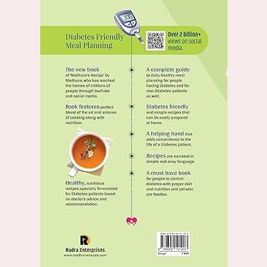 1)Healthy, nutritious recipes specially formulated for Diabetes patients based on doctor’s advice and recommendation. 2)Diabetes friendly and simple recipes that can be easily prepared at home. 3)A complete guide to daily healthy meal planning for people having diabetes and for non-Diabetes patients as well. 4)A helping hand that adds convenience to the life of a Diabetes patient. 5)Recipes are narrated in simple and easy language. 6)A must have book for people to control diabetes with proper diet and nutrition and yet who are foodies.