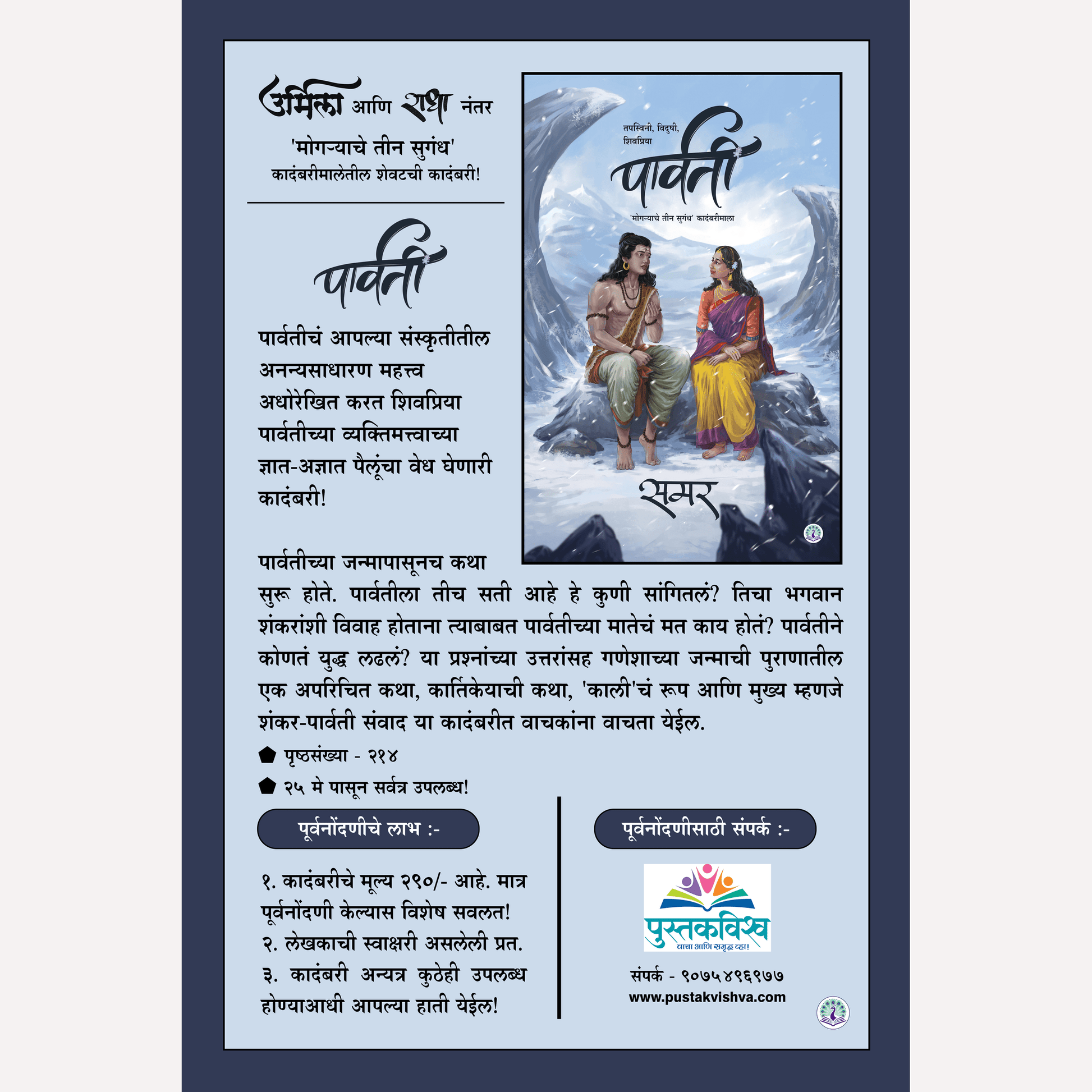 पार्वतीच्या जन्मापासूनच कथा सुरू होते. पार्वतीला तीच सती आहे हे कुणी सांगितलं? तिचा भगवान शंकरांशी विवाह होताना त्याबाबत पार्वतीच्या मातेचं मत काय होतं? पार्वतीने कोणतं युद्ध लढलं? या प्रश्नांच्या उत्तरांसह गणेशाच्या जन्माची पुराणातील एक अपरिचित कथा, कार्तिकेयाची कथा, 'काली'चं रूप आणि मुख्य म्हणजे शंकर-पार्वती संवाद या कादंबरीत वाचकांना वाचता येईल.