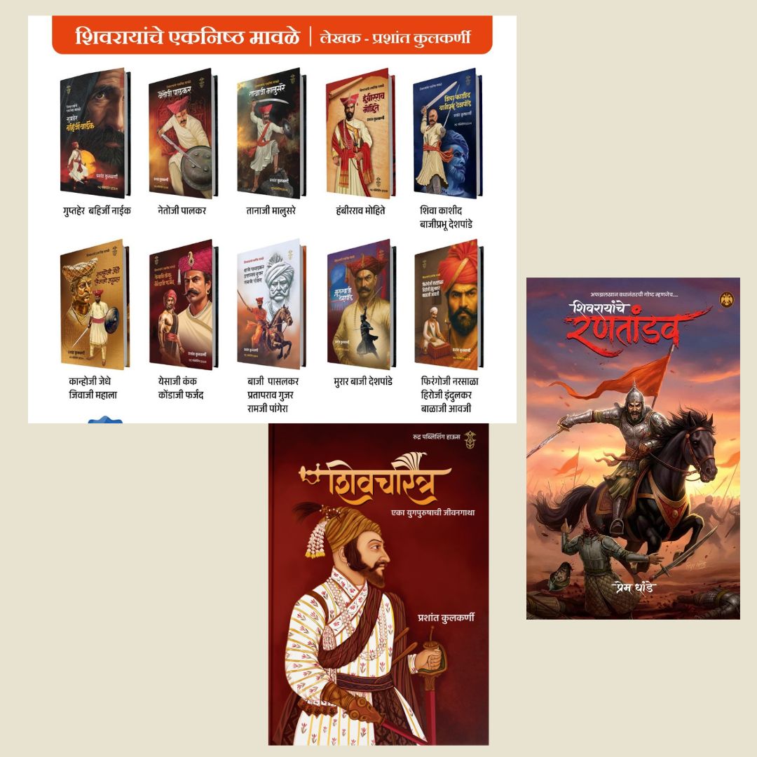 Shivarayanche Rantandav + Shivcharitra + Shivrayanche Eknishta Mavle 10 Pustakancha Set ( शिवरायांचे रणतांडव + शिवरायांचे एकनिष्ठ मावळे १० पुस्तकांचा संच + शिवचरित्र एका युगपुरुषाची जीवनगाथा)