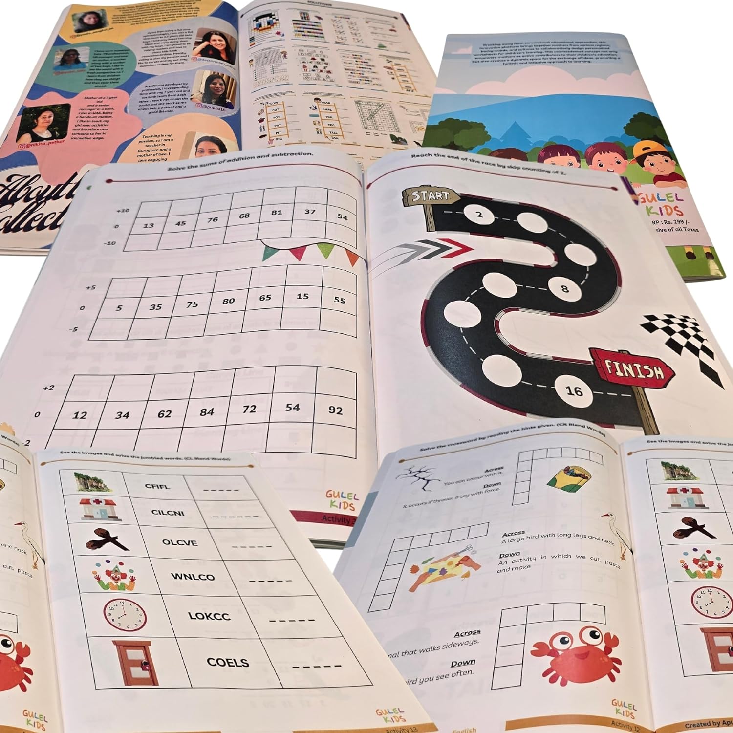 The Gulel Collective Worksheets 2 is a comprehensive activity book designed specifically for children aged 5 and above. This engaging workbook is carefully crafted to enhance the cognitive abilities of young minds and serve as the ultimate brain booster. With a wide range of early learning activities and mind churning worksheets, this product is an excellent tool for parents and educators alike to support children's development during their crucial early years.